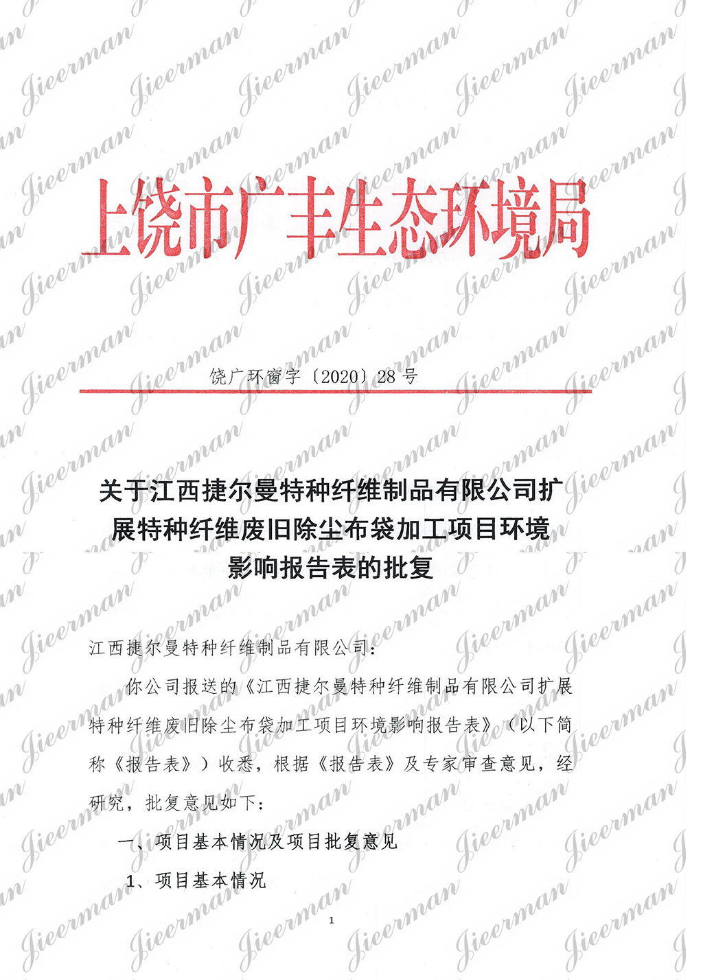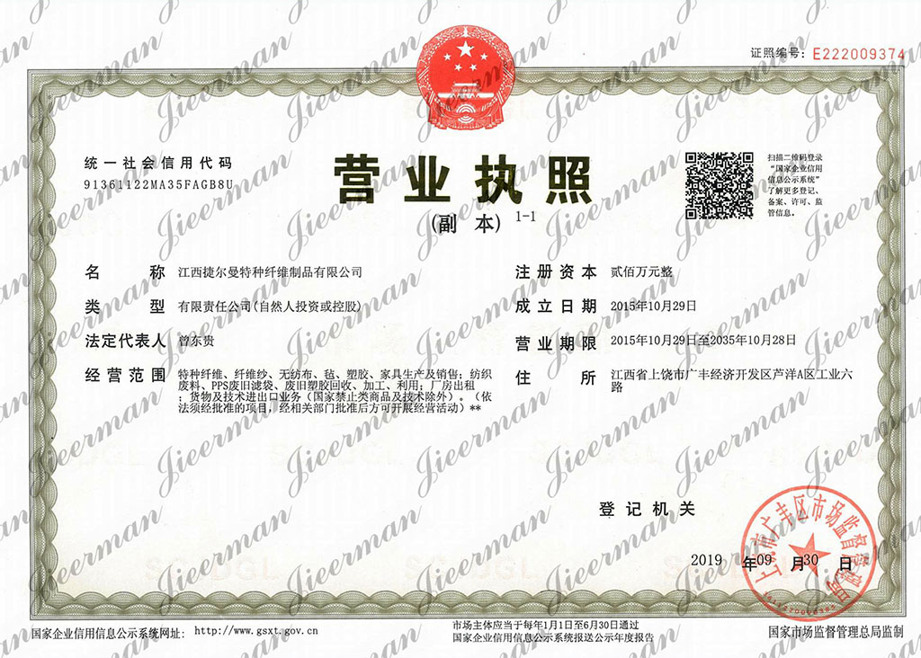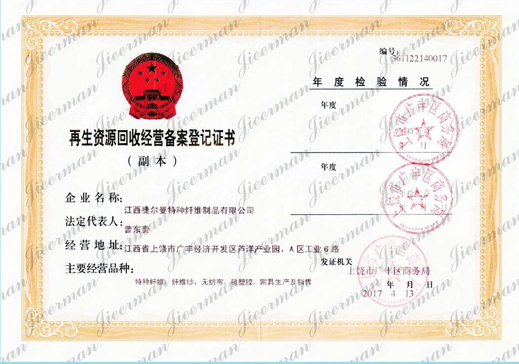 邮寄地址:江西省上饶市广丰区广丰经济开发区芦洋A区工业六路 江西捷尔曼特种纤维制品有限公司