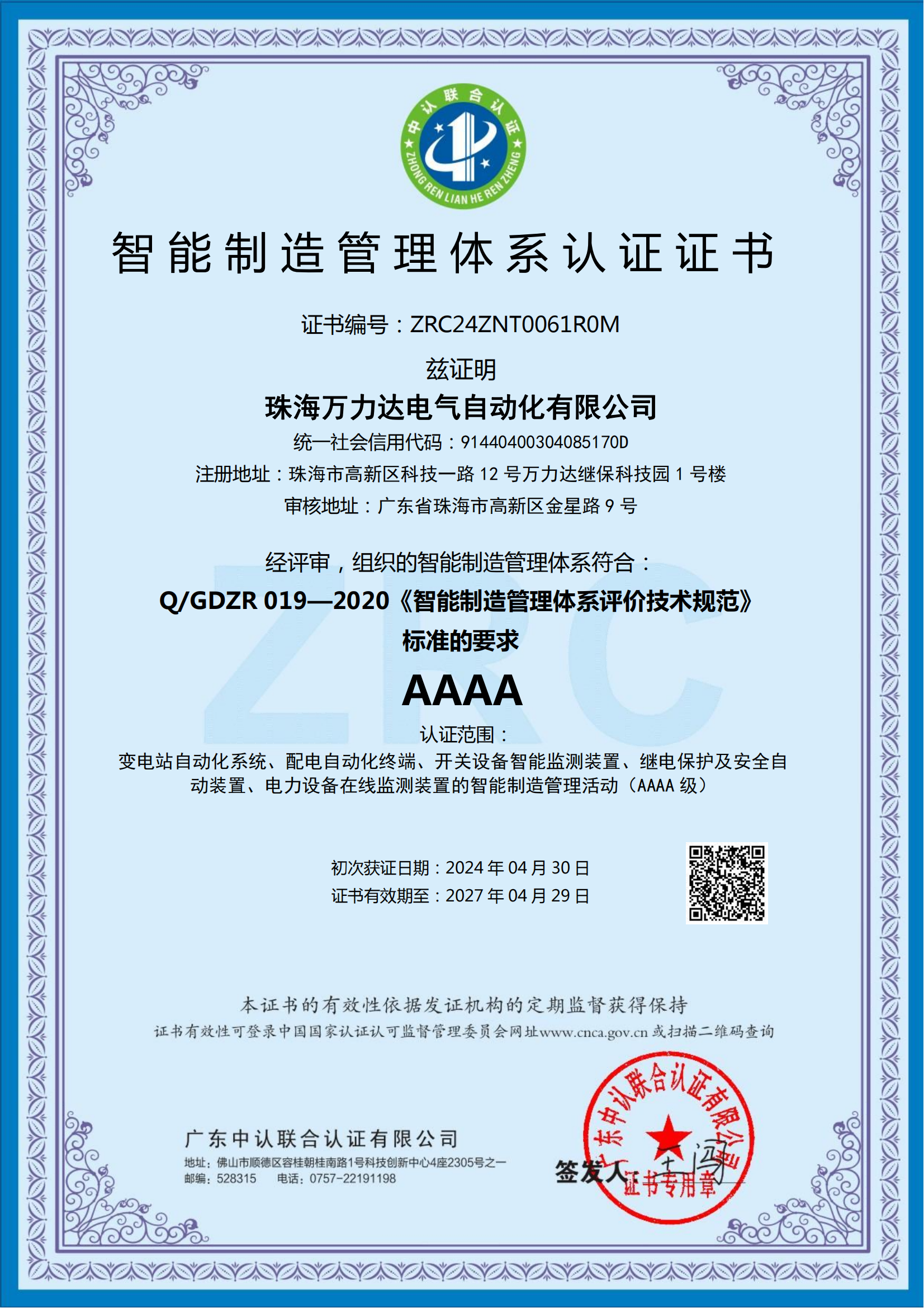 中国正全面推动智能制造,加快制造业数字化转型,发展新质生产力。日前,万力达电气成功通过智能制造管理体系认证,代表着公司在推进生产管理全链条数智化建设、数字化转型升级路上再创高峰。