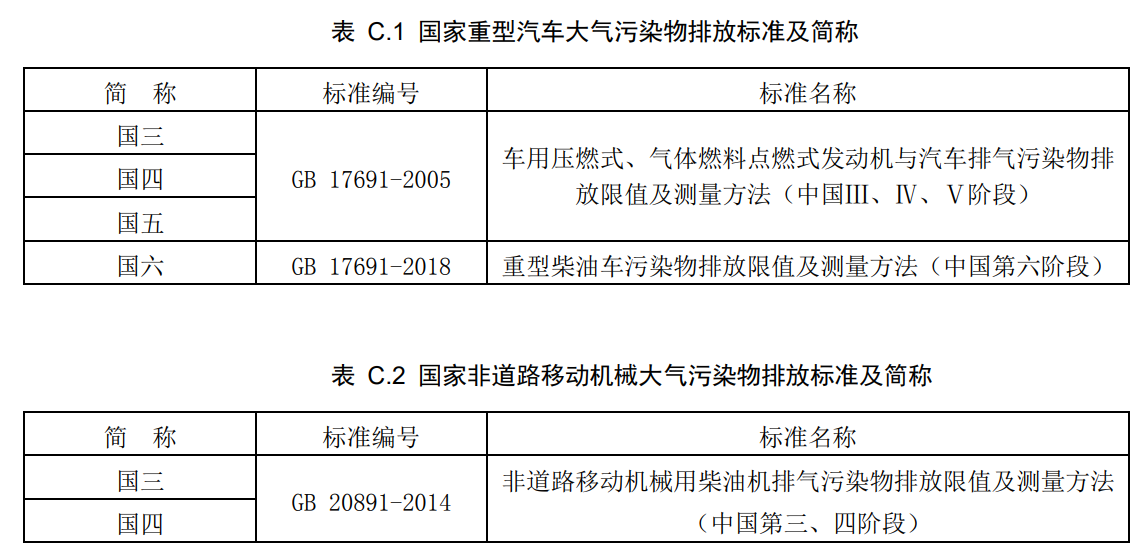 国家重型汽车和非道路移动机械大气污染物排放标准及简称