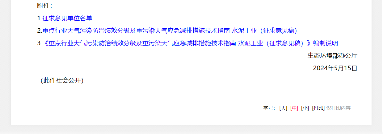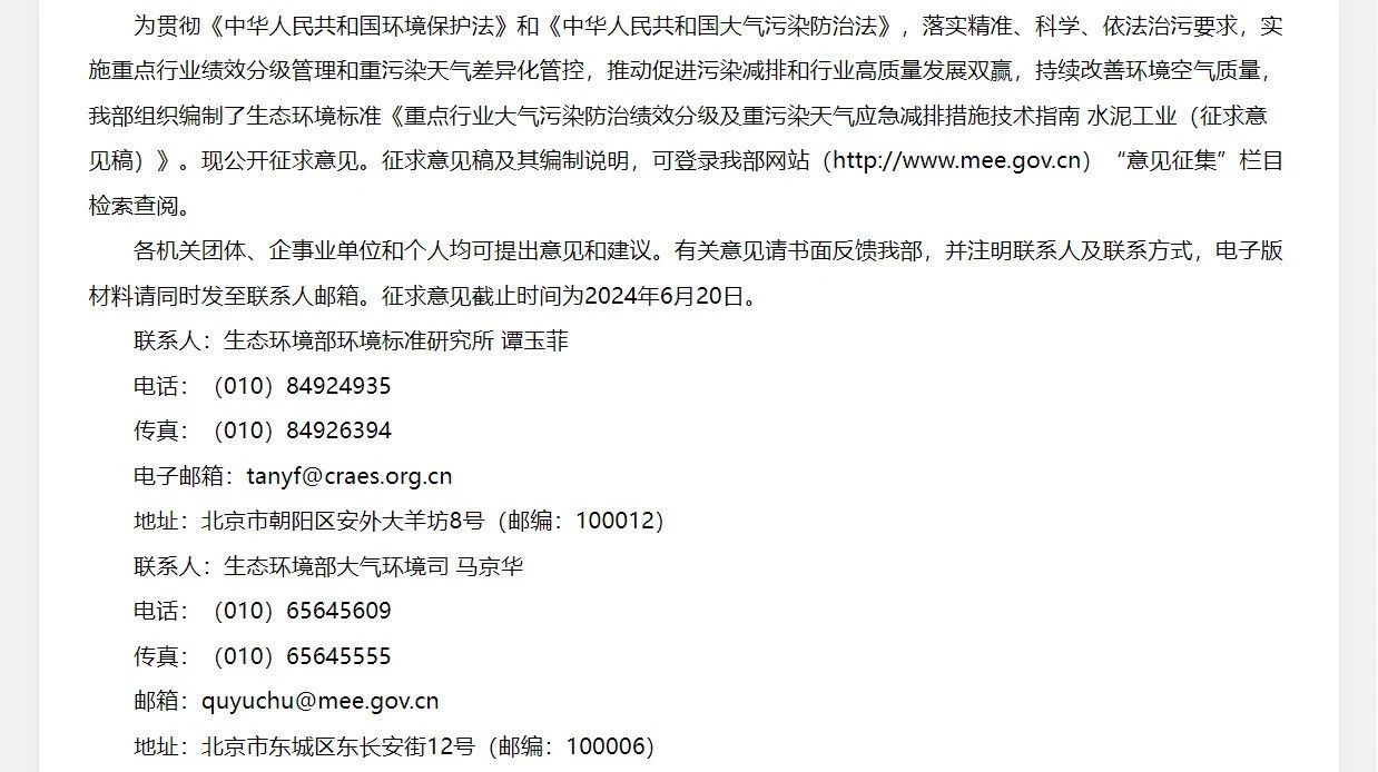 5月16日,生态环境部办公厅发布关于公开征求国家生态环境标准《重点行业大气污染防治绩效分级及重污染天气应急减排措施技术指南水泥工业(征求意见稿)》意见的通知(以下简称“征求意见稿”)。