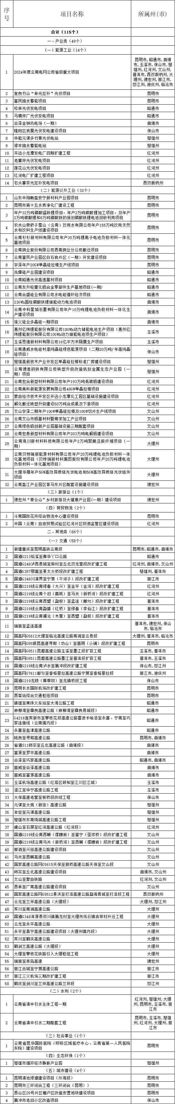 云南省2024年度省级重大项目清单