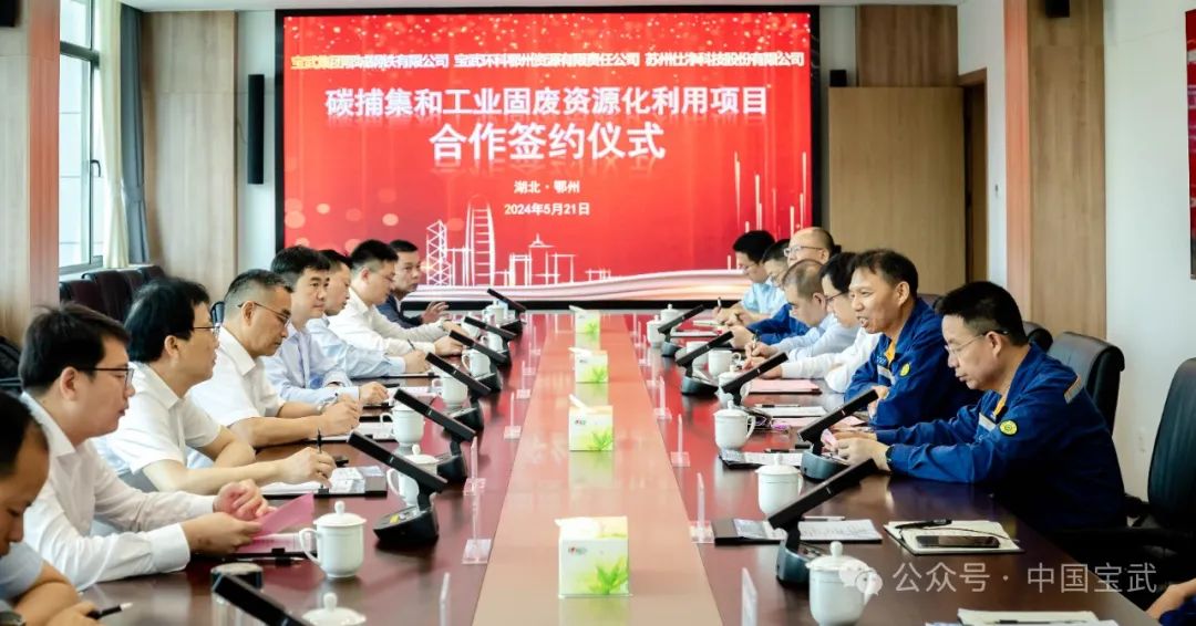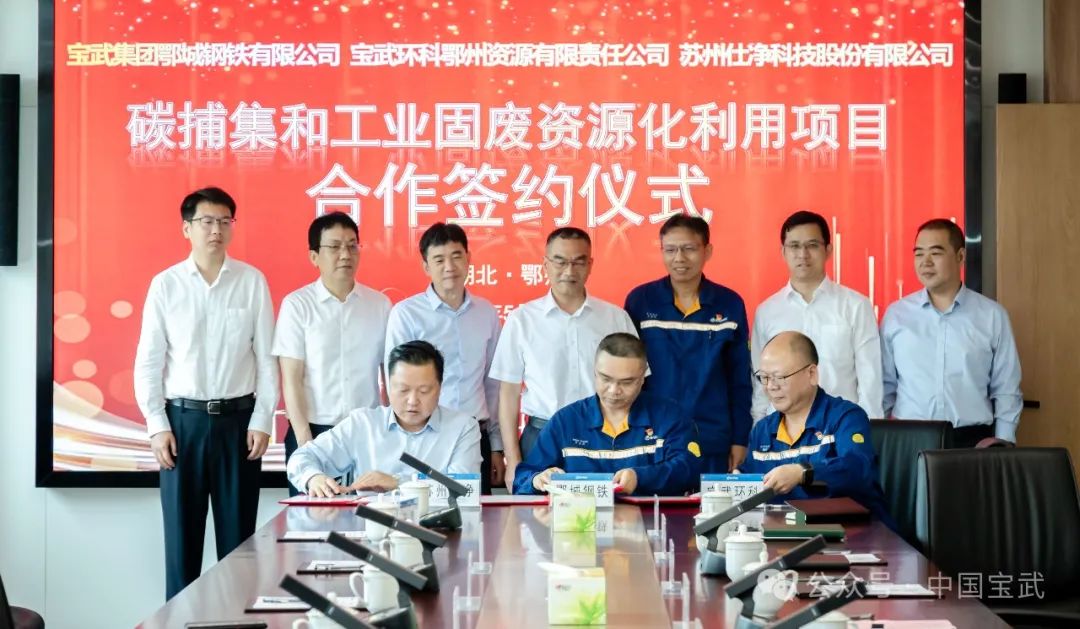 为构建高水平钢铁生态圈,带动低碳冶金行业延链补链强链,加快推进“四个转变”,拓展产业园区“新版图”,5月21日,中南钢铁鄂城钢铁与宝武环科、苏州仕净举行碳捕集和工业固废资源化利用项目签约仪式。
