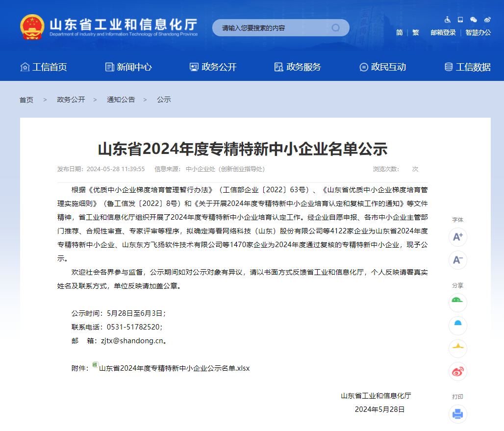 5月28日,山东省工业和信息化厅发布《山东省2024年度专精特新中小企业名单公示》,我县23家企业入选山东省2024年度专精特新中小企业,其中6家企业通过复核,新增17家,新认定数量较去年同期增加8家。