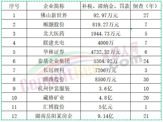 12家企业被倒查5至30年,补税90万至9亿元,合计近25亿元