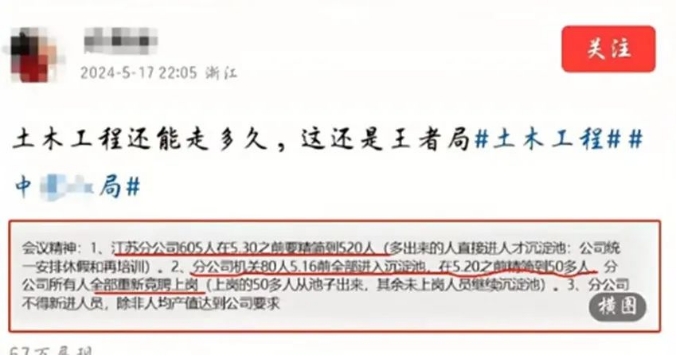 2、分公司机关80人在5月16日之前全部进入人才沉淀池,5月20日之前精简到50余人,而且还需要全部重新竞聘上岗。其余30人继续待在池子里。