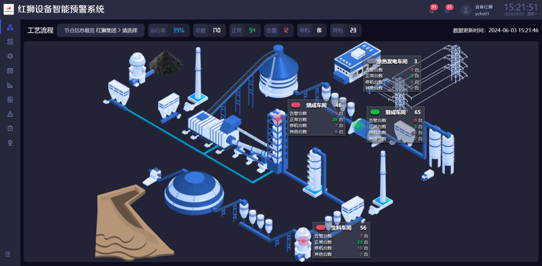 目前,宜春红狮水泥已建成水泥行业风机、皮带机、磨机、旋风机等64类设备模型,系统预警准确率达95%,帮助企业实现设备全生命周期管理和设备预测性维护。