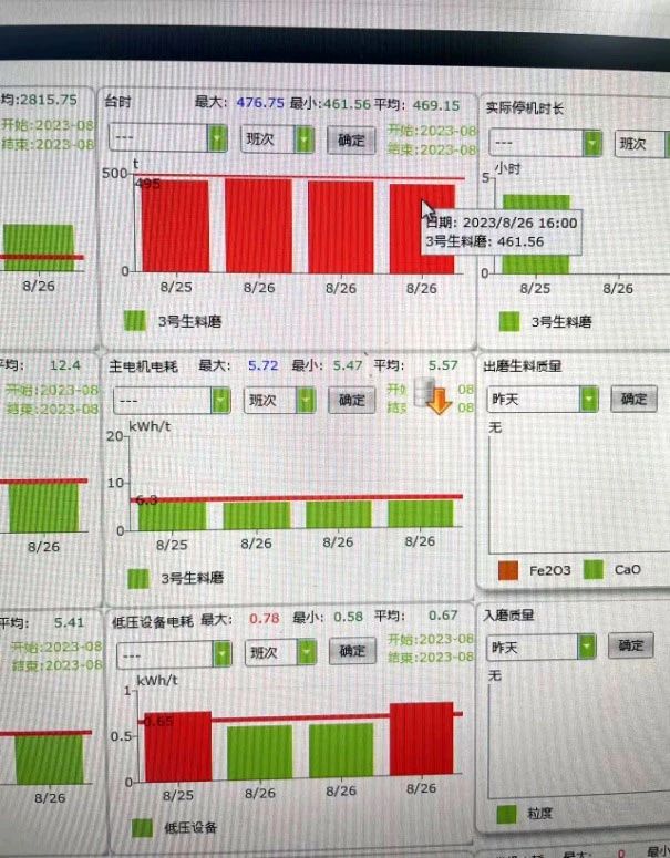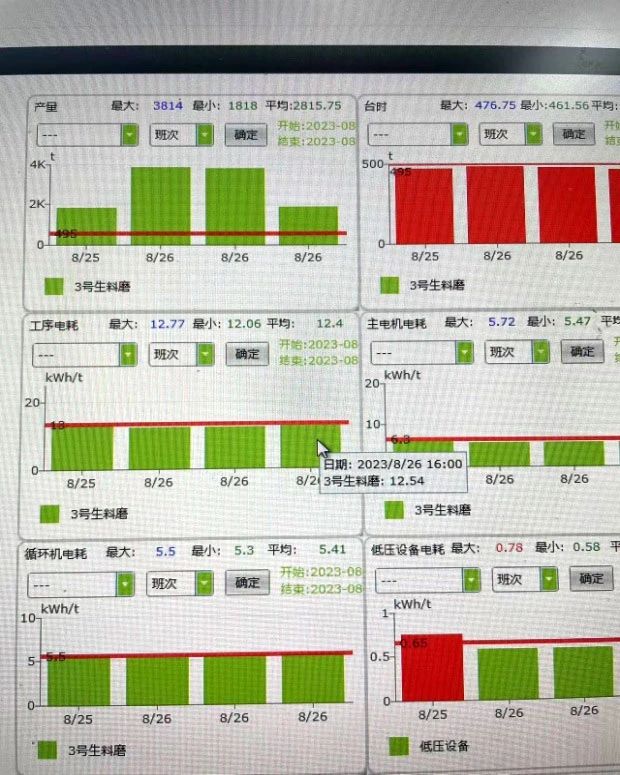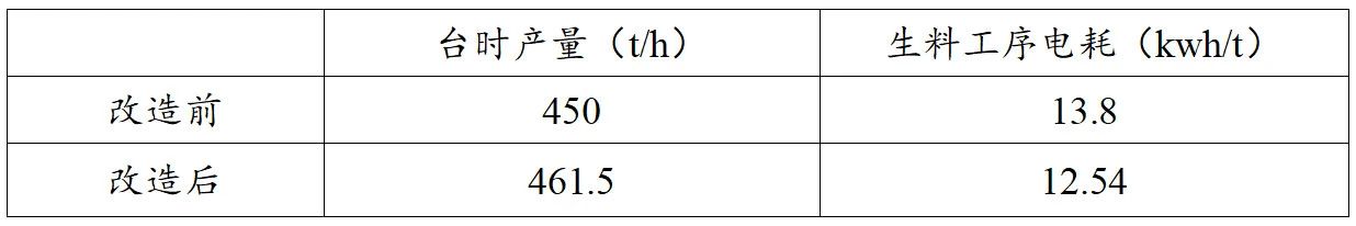 经统计,系统台时产量较改造前产量提升了11.5t/h,粉磨电耗较改造前降低了1.26kwh/t。改在后指标对照如下: