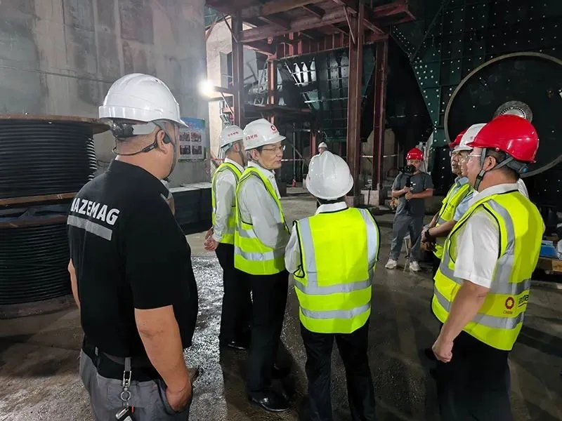 据水泥人网了解,该项目采用了哈兹马克四台辊轴筛(辊轴筛4xhrs2639)和四台破碎机(破碎机4xhpi2530)小时系统能力可达4x3000tph。周育先董事长在现场调研时与哈兹马克现场工作人员亲切交谈,并对设备相关性能及能实现的功能功效与现场负责人沟通交流。