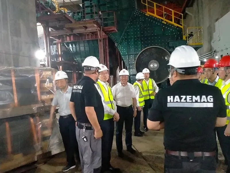 水泥人网注意到,无论是周育先董事长与哈兹马克现场工作人员的交流以及合影照片其背景都是一款“重量级”设备,即哈兹马克初级反击式破碎机 HPI2530。