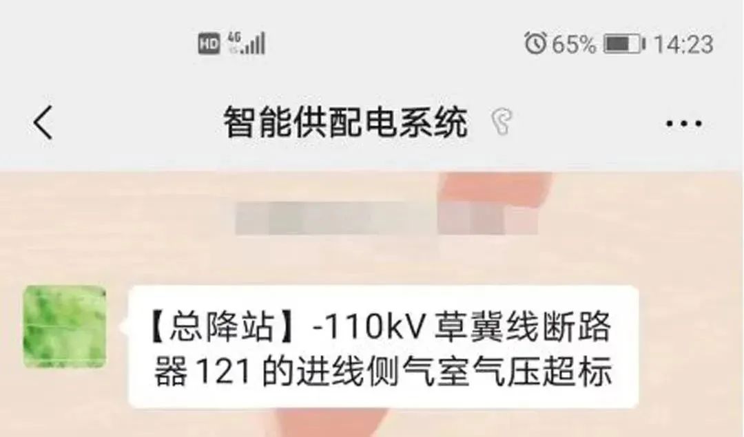 2024年1月5日,该企业智能供配电管理系统发出“【总降站】-110kV草冀线路断路器121的进线侧气室气压超标”告警。