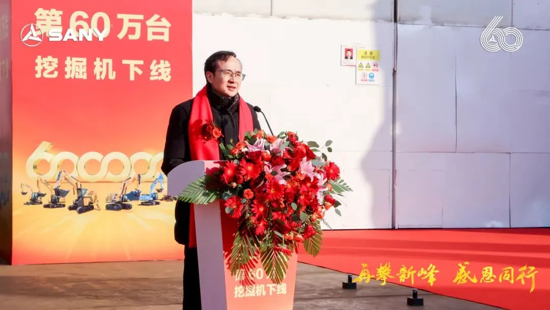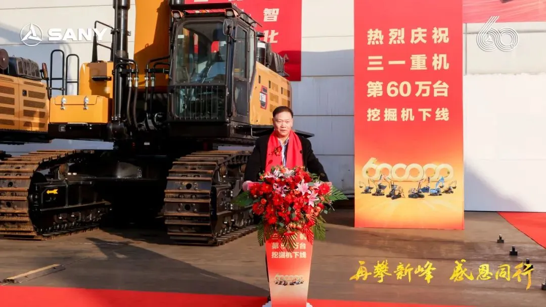 三一集团高级副总裁、三一重机总经理王政先生在致辞中表示:“寒冬难掩喜悦,见证三一挖机第60万台下线盛事。三一自1986年起,以“三个一流”为愿景,秉持“品质改变世界”使命,从湖南走向全球。这第60万台,不仅铭刻于三一的发展历程,也创造了中国挖机历史新的高度。