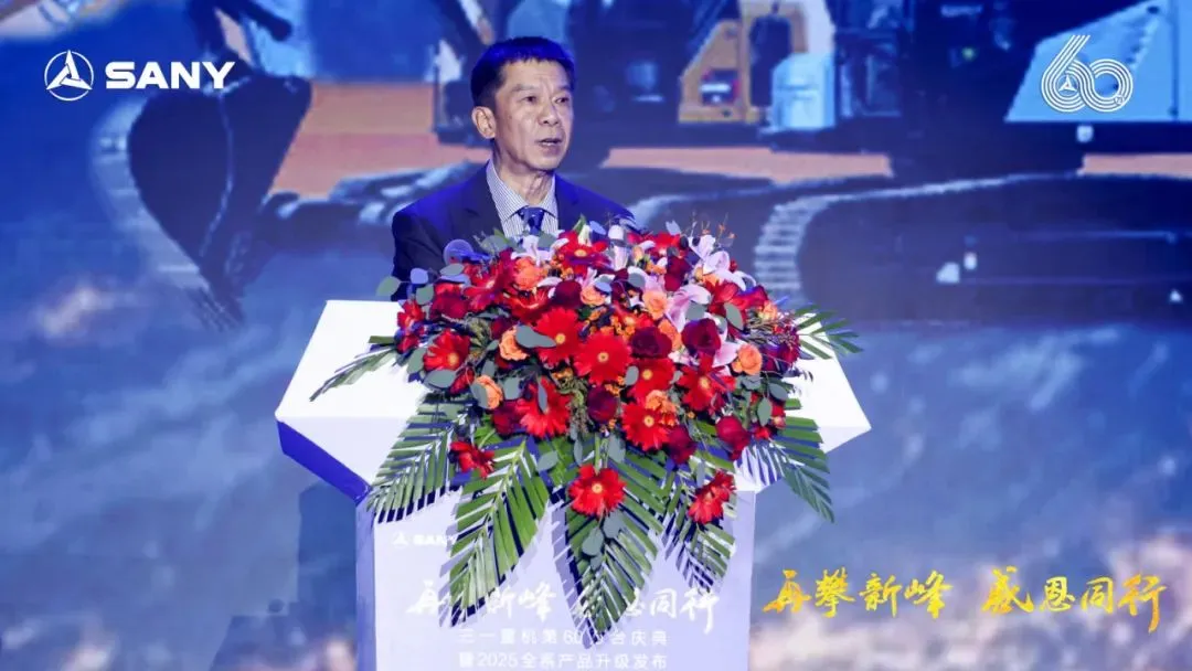 中国工程机械工业协会会长苏子孟先生出席大会并向三一重机六十万台挖掘机庆典暨2025全系列产品升级表示热烈的祝贺!