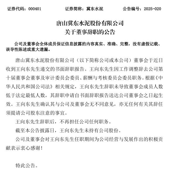 发布公告。王向东先生因工作调整辞去公司第十届董事会董事及审计委员会委员、薪酬与考核委员会委员职务,不再担任公司任何职务。