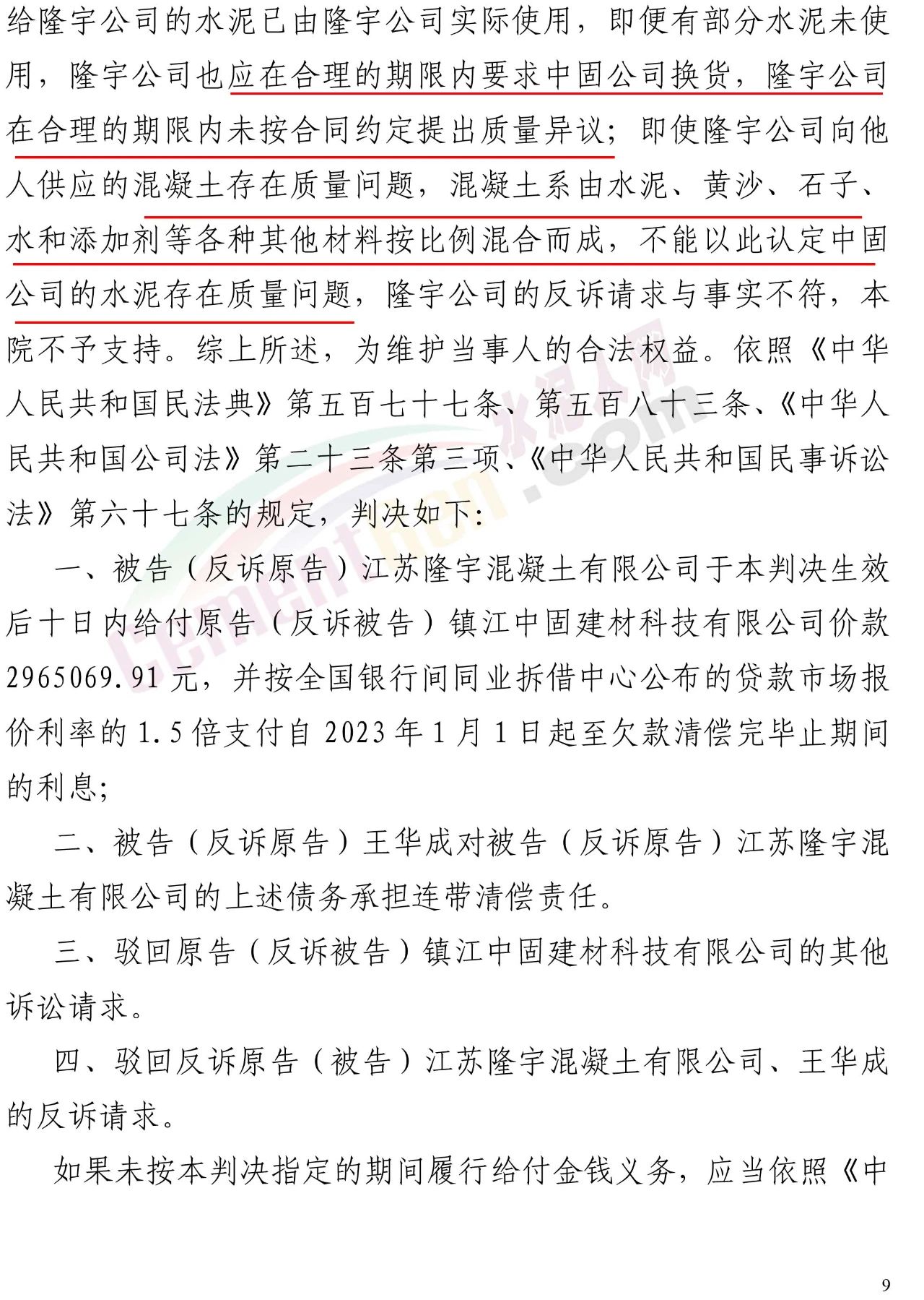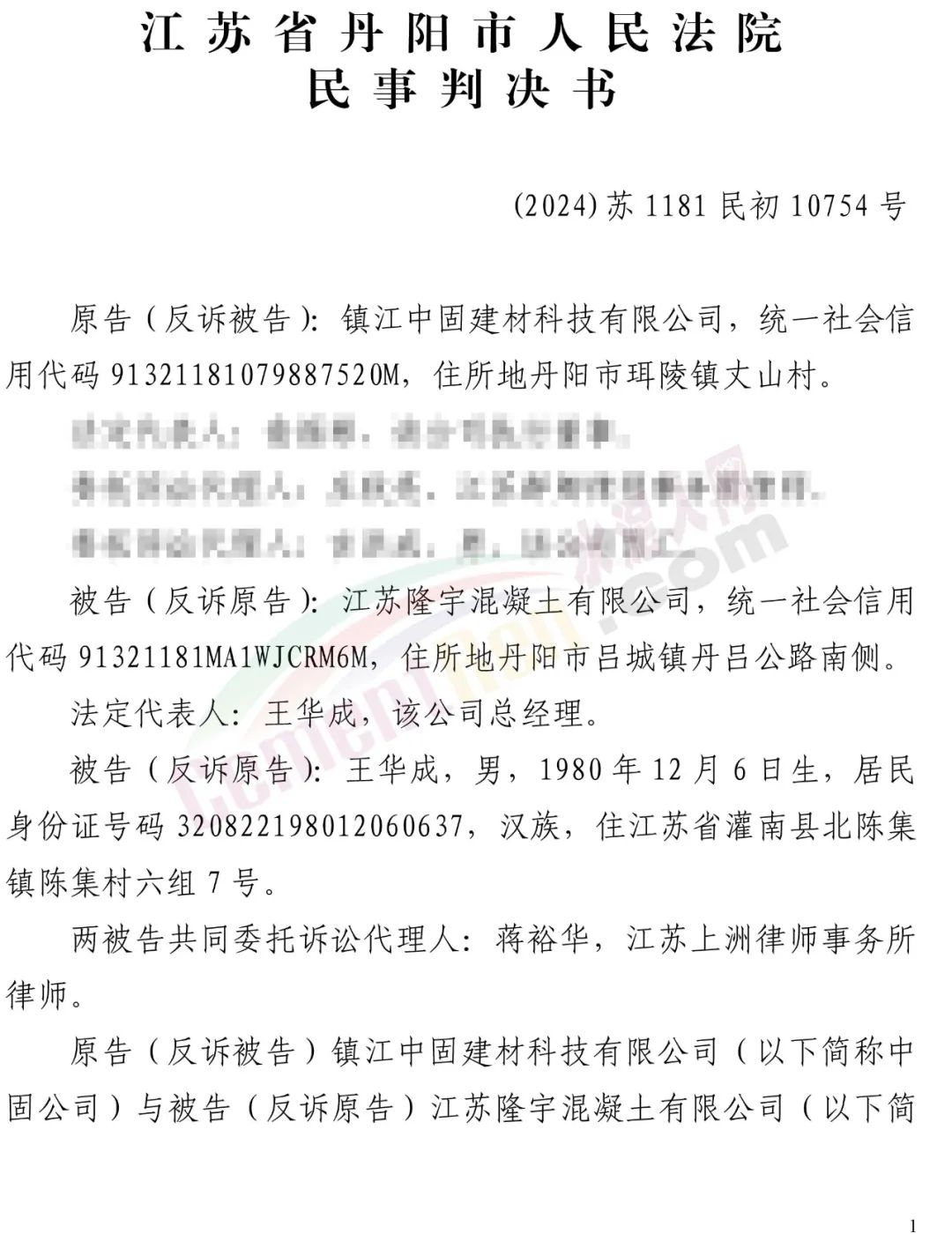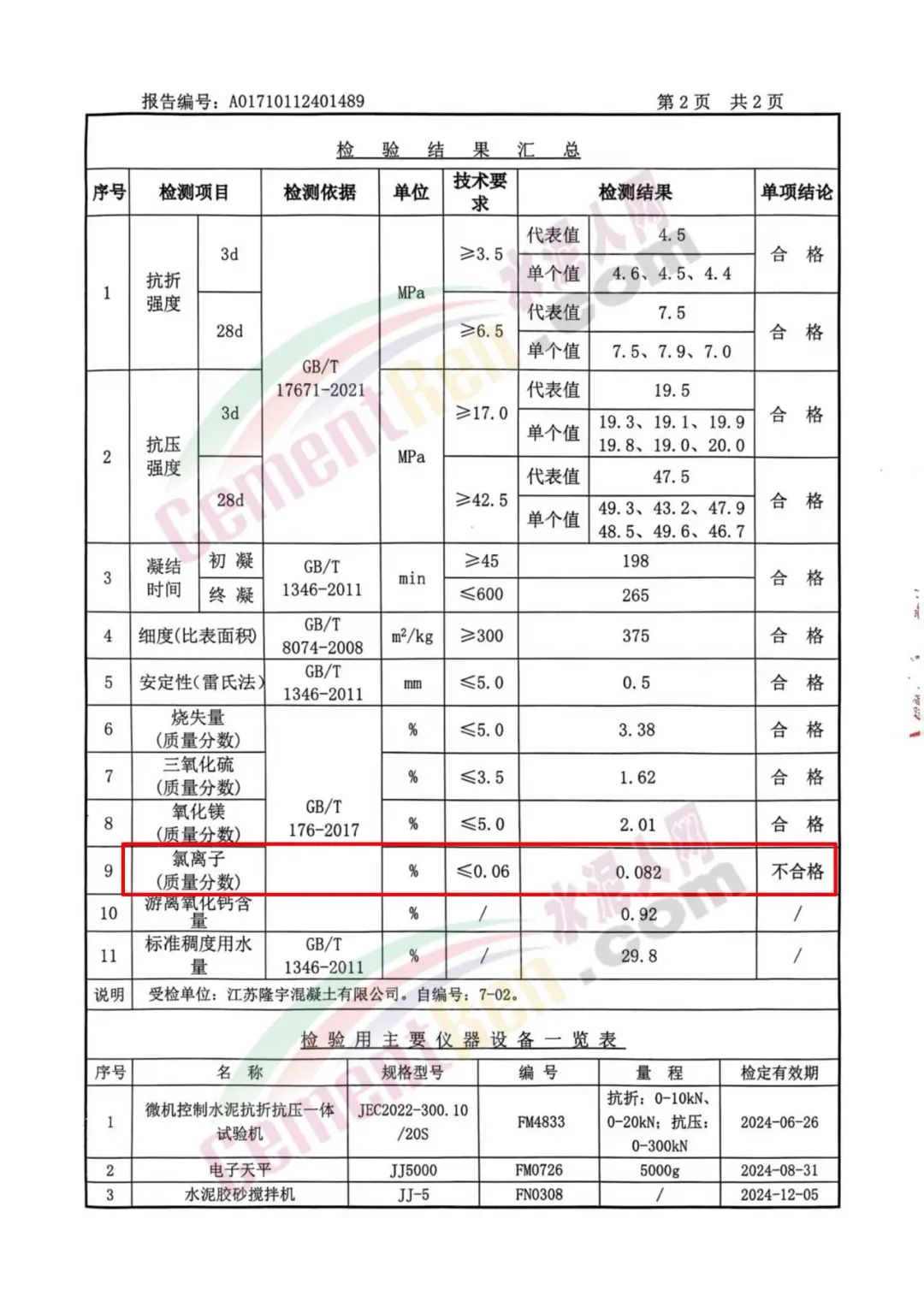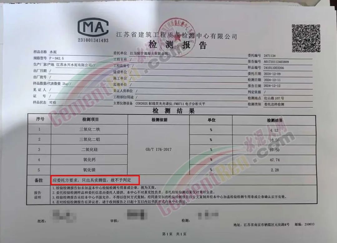 隆宇公司则提起反诉,坚称中固公司供应的水泥存在严重质量问题(氯离子超标、强度不足),并提供了自己委托江苏省建筑工程质量检测中心有限公司于2024年12月12日出具的检测报告作为核心证据。然而,这份报告成为其败诉的关键伏笔。