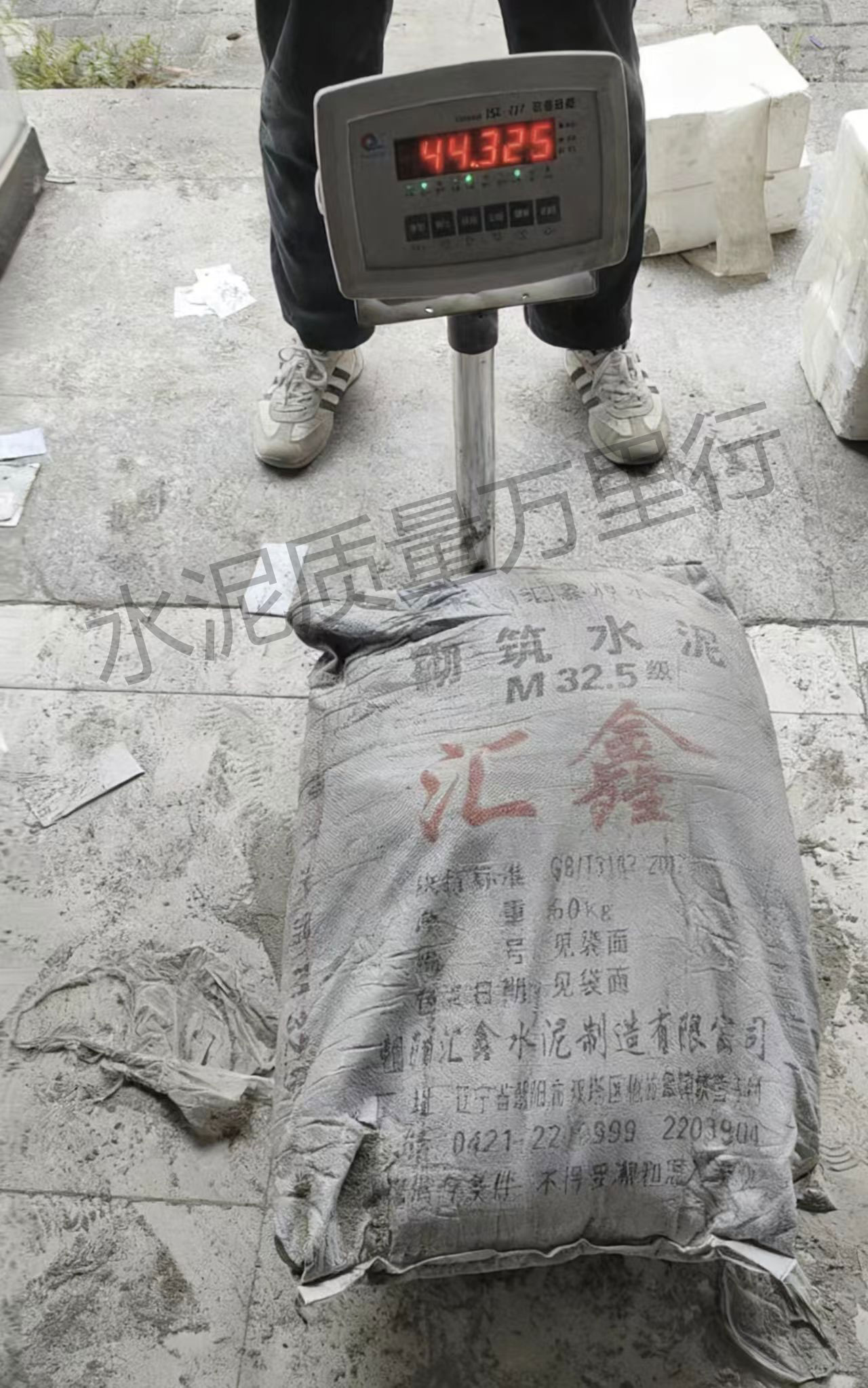 根据国家标准GB175-2023《通用硅酸盐水泥》及GB/T3183-2017《砌筑水泥》相关规定,包装水泥标称重量为50kg,实测重量需达到标称重量的99%(即49.5kg)才算合格。但此次抽检结果显示,30个批次的水泥未达到这一基础要求,占总抽检量的48.4%,意味着近半数流通水泥存在“缺斤短两”问题。其中,28批次水泥实测袋重不足49.3kg,朝阳汇鑫水泥制造有限公司生产的“汇鑫牌”砌筑水泥M32.5问题最为严重,实测袋重仅44.325kg,较标准重量缺少5.175kg(少10斤多),相当于消费者每购买10袋水泥,就有1袋“凭空消失”。