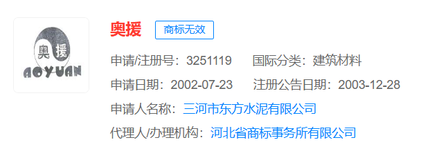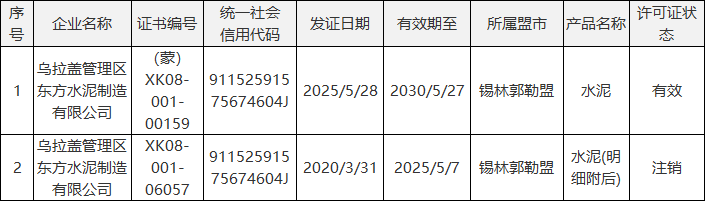 在梳理抽检信息时发现,部分不合格企业还存在资质与商标使用不规范问题,涉嫌违反相关管理规定。乌拉盖管理区东方水泥制造有限公司成为典型案例。该企业生产的“奥援”牌矿渣硅酸盐水泥(P.S.A42.5),不仅氯离子检测不合格,还存在双重违规:一是生产许可证编号“XK08-001-006057”已处于注销状态,企业虽已申请新证“(蒙)XK08-001-00159”,但产品包装未及时更新标注;二是所使用的“奥援”商标,实际归属三河市东方水泥有限公司,且当前商标状态为“无效”,涉嫌违规使用他人失效商标。